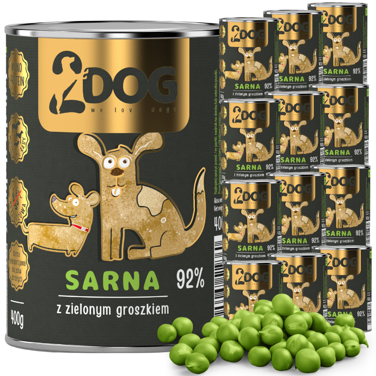Wysokiej jakości puszka z mokrą karmą dla psa, stworzona z myślą o najbardziej wymagających czworonogach. To pełnoporcjowa, monoproteinowa receptura oparta na sarnie (aż 92%), z czego 60% to mięso mięśniowe – źródło dobrze przyswajalnego białka.