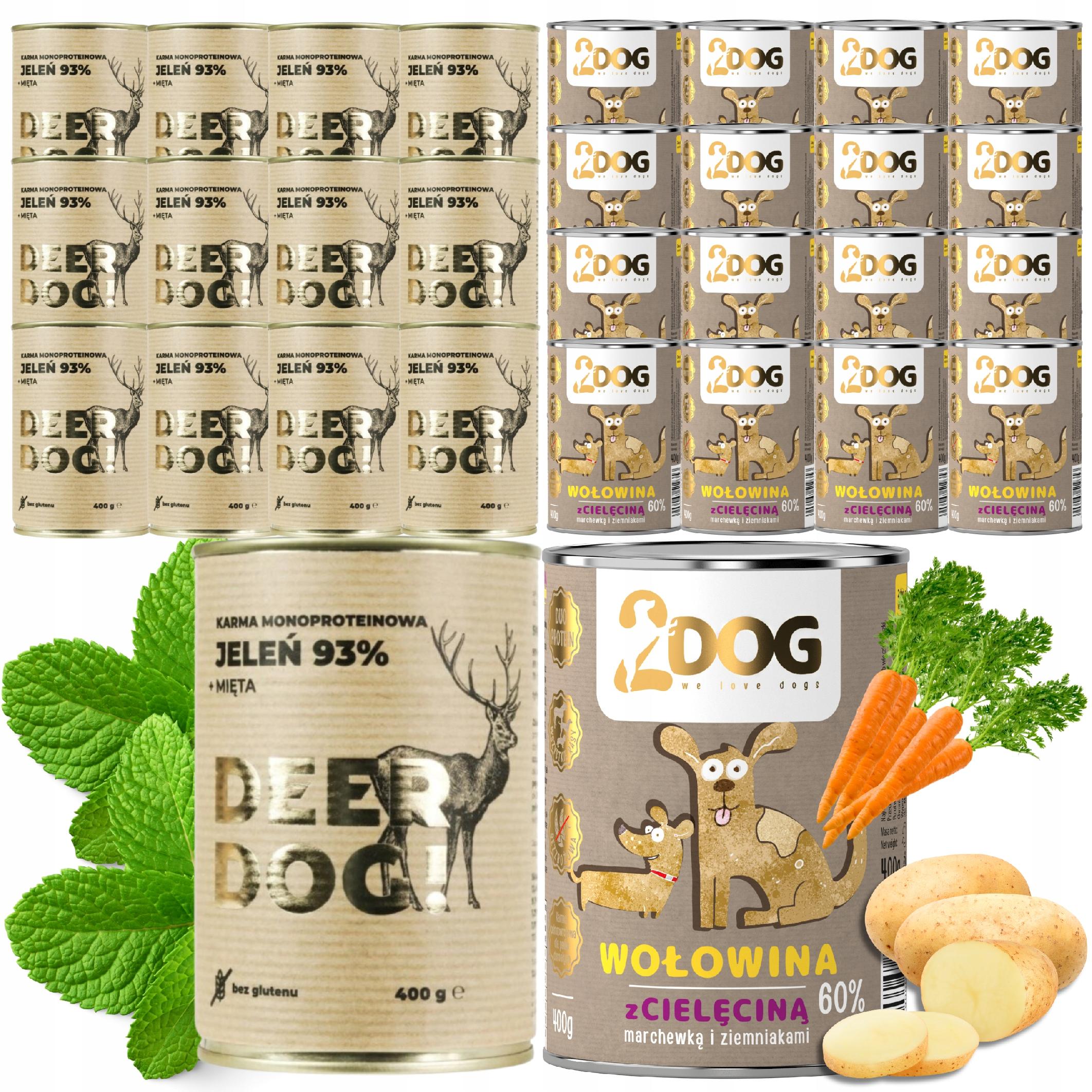 2Dog wołowina z cielęciną 400g 12 sztuk + jeleń deer dog 400 g 12 sztuk