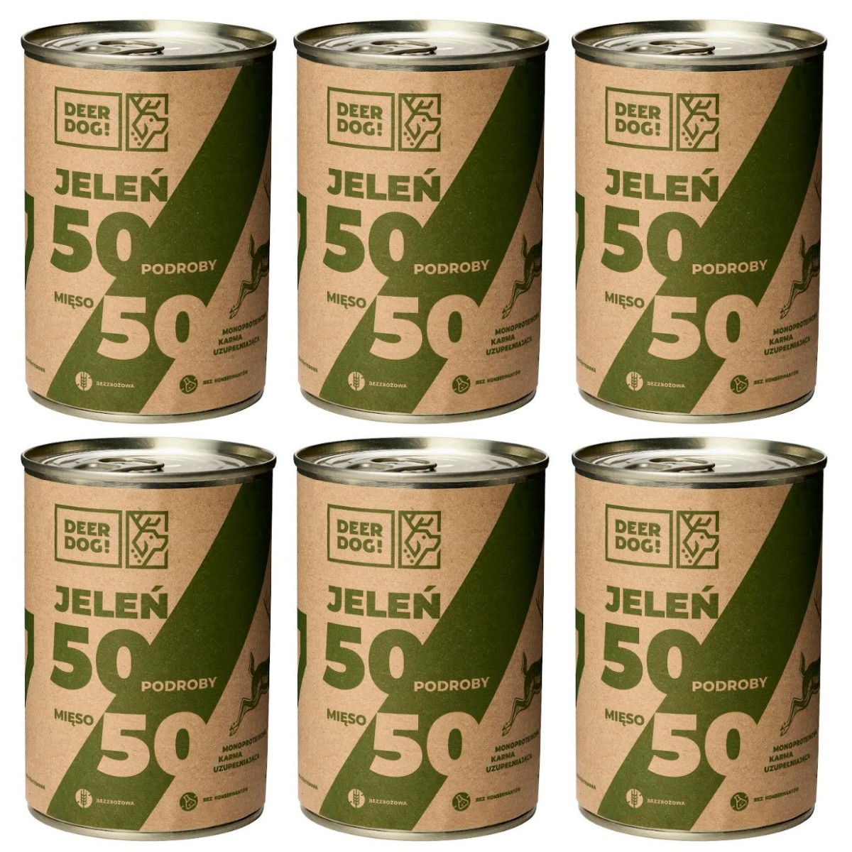 DEER DOG JELEŃ 50% PODROBY 50% MIĘSA Mokra karma dla psa 400 g 6 sztuk