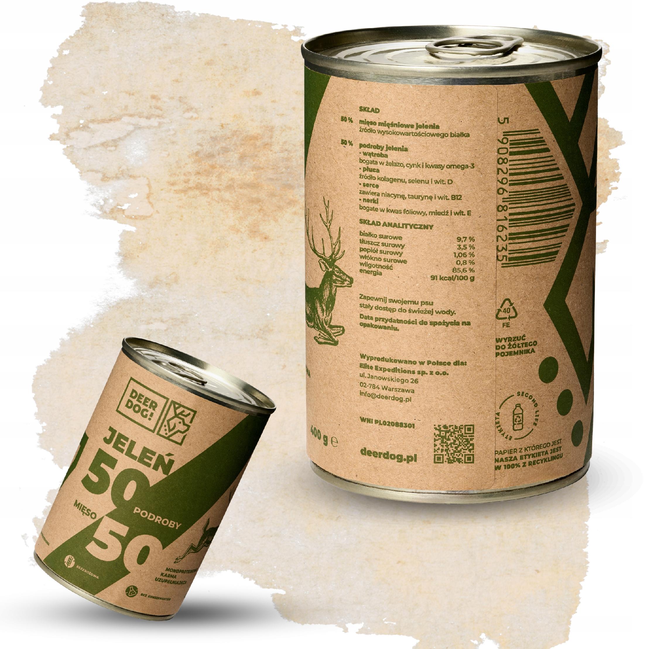 Mokra karma dla psa DEER DOG JELEŃ 50% PODROBY 50% MIĘSA 400 g