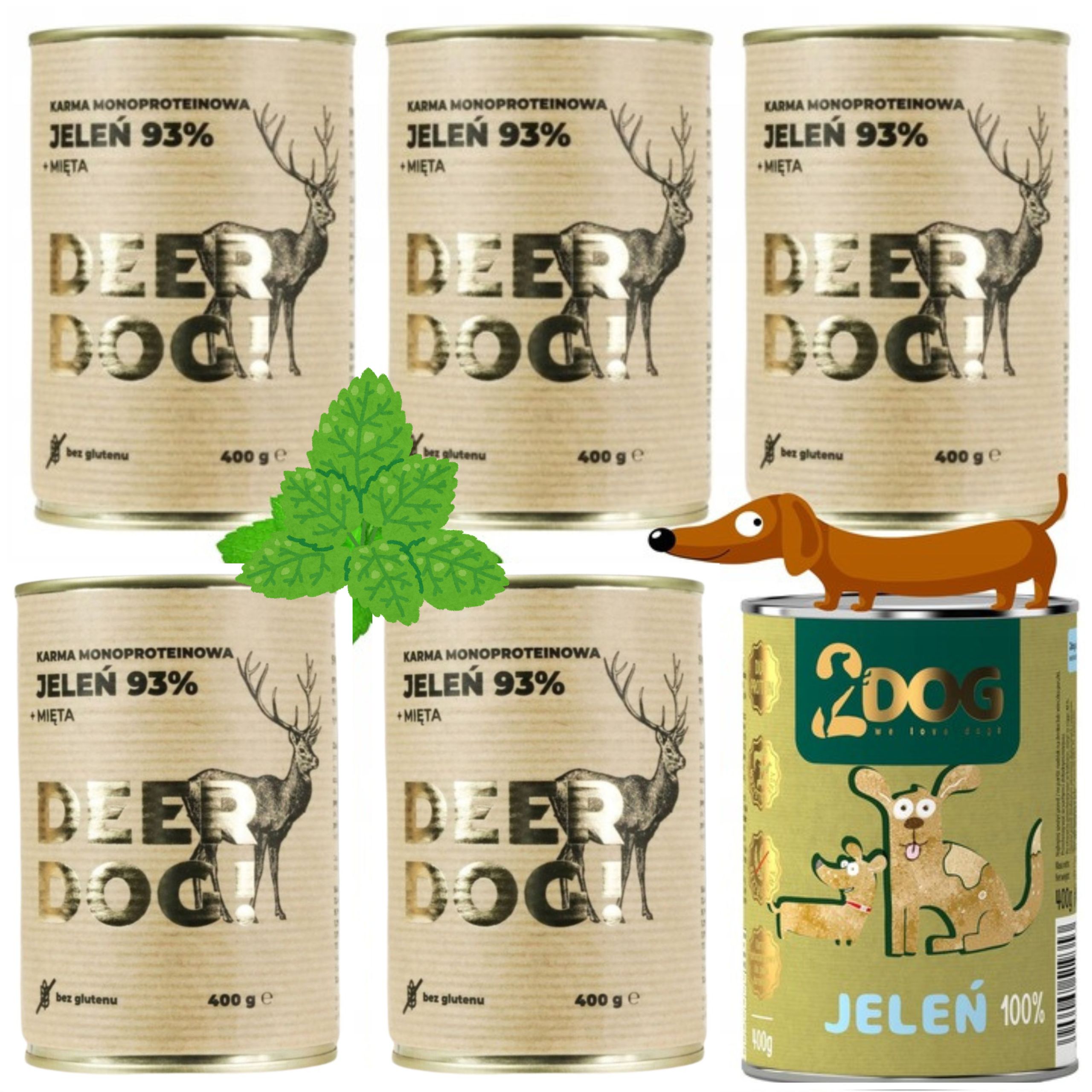 5 X MOKRA KARMA JELEŃ + MIĘTA 400G PUSZKA