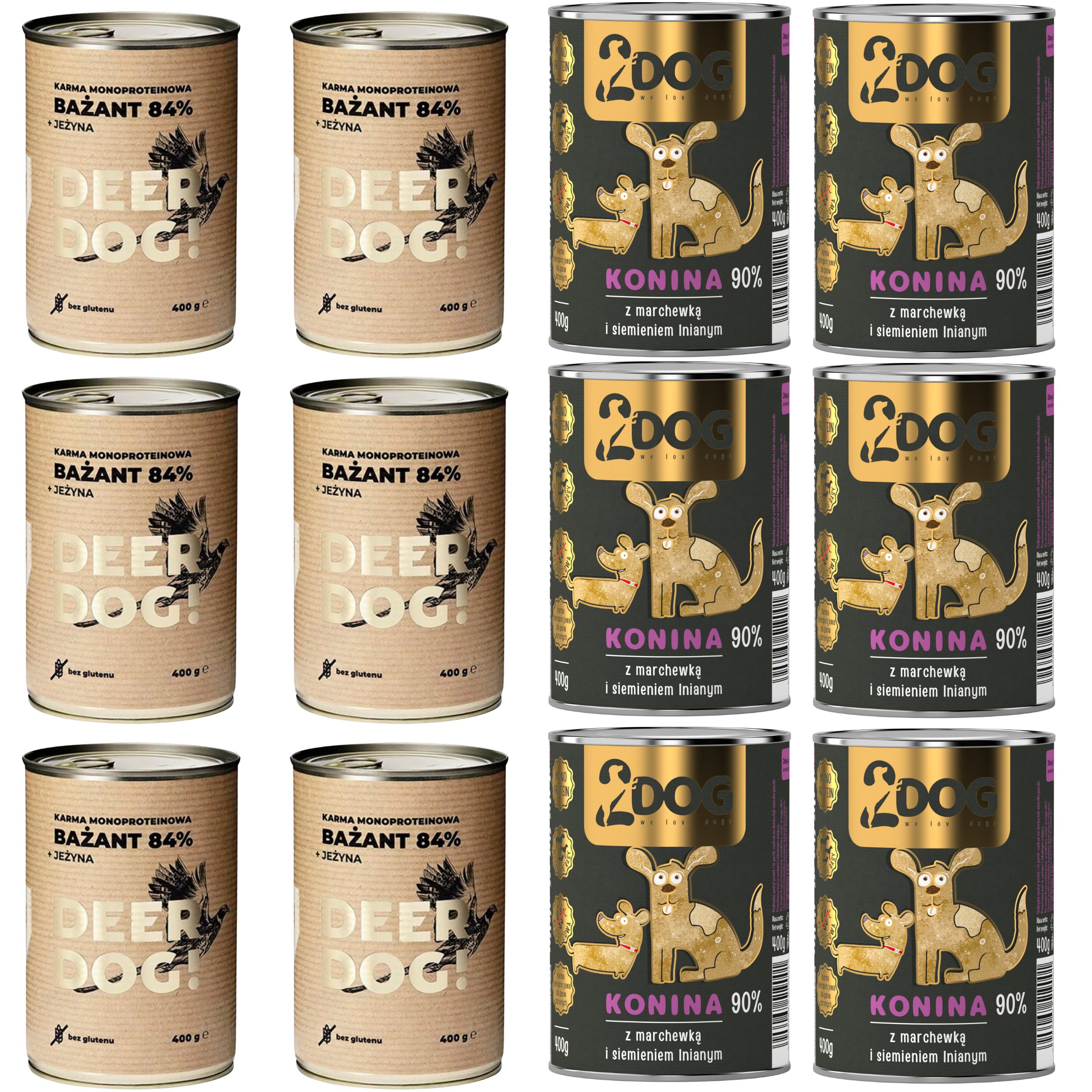 MOKRA KARMA DLA PSA Bażant 400g + 2Dog konina z siemieniem 400g MONOPROTEIN