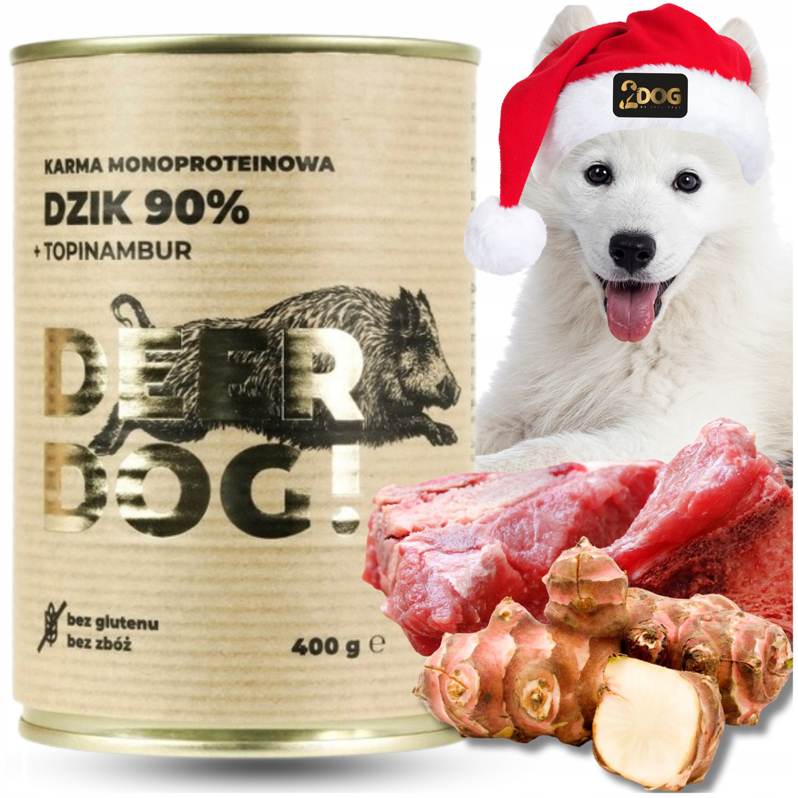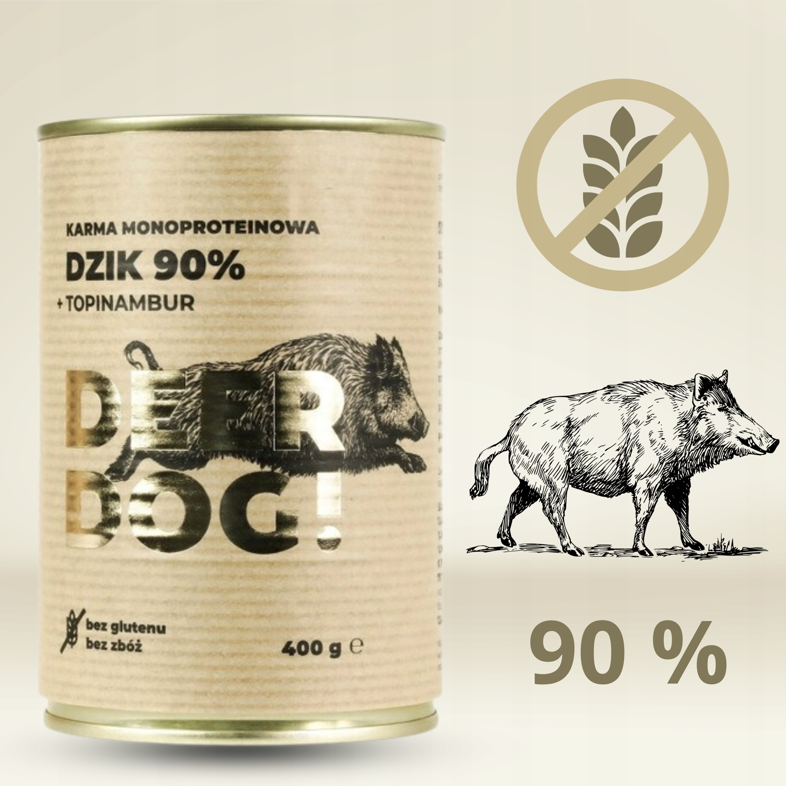 Mokra karma dla psa Deer Dog DZIK Z TOPINAMBUREM puszka 400 G 90% MIĘSA