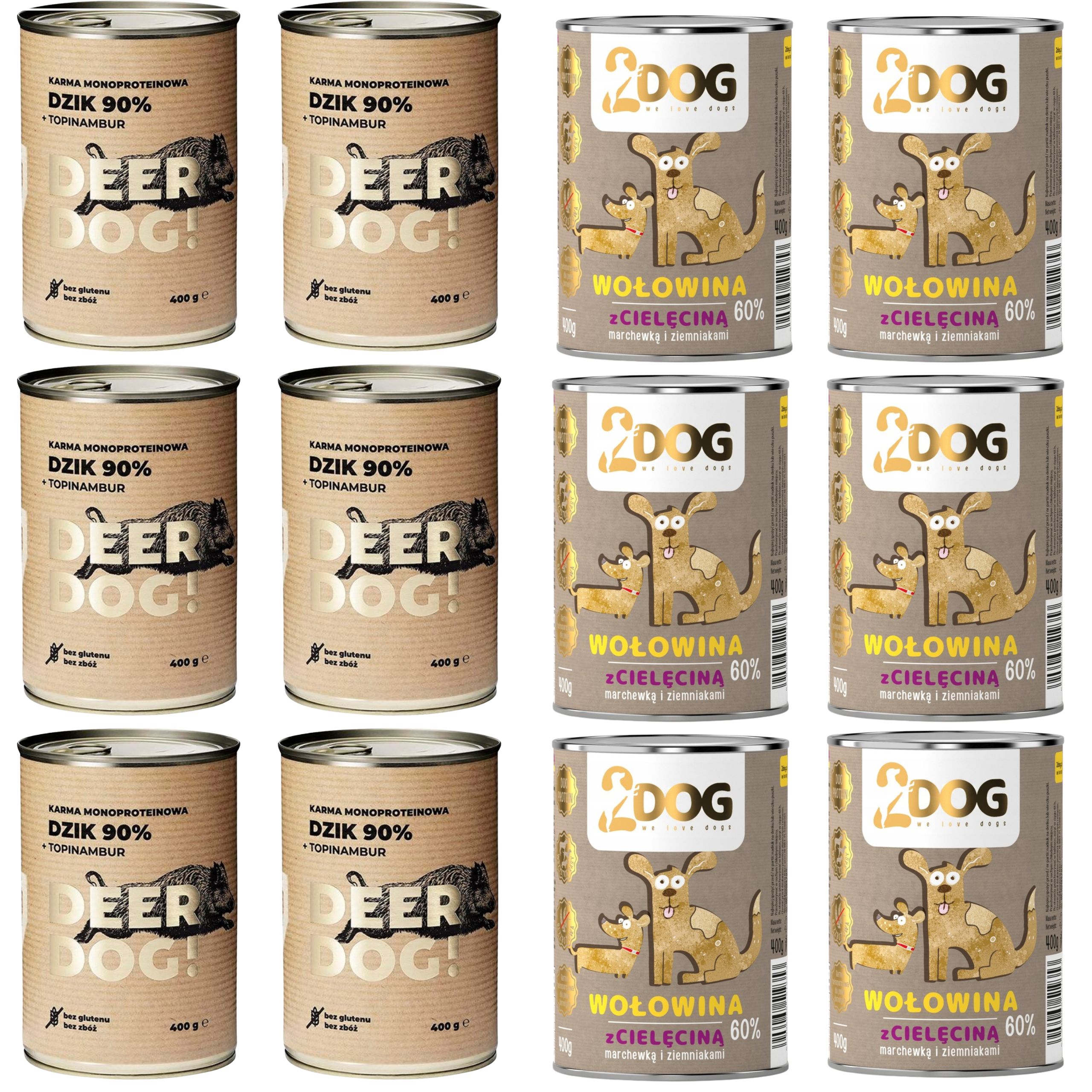 MOKRA KARMA DLA PSA Dzik 400g + 2Dog wołowina z cielęciną HIPOALERGICZNA