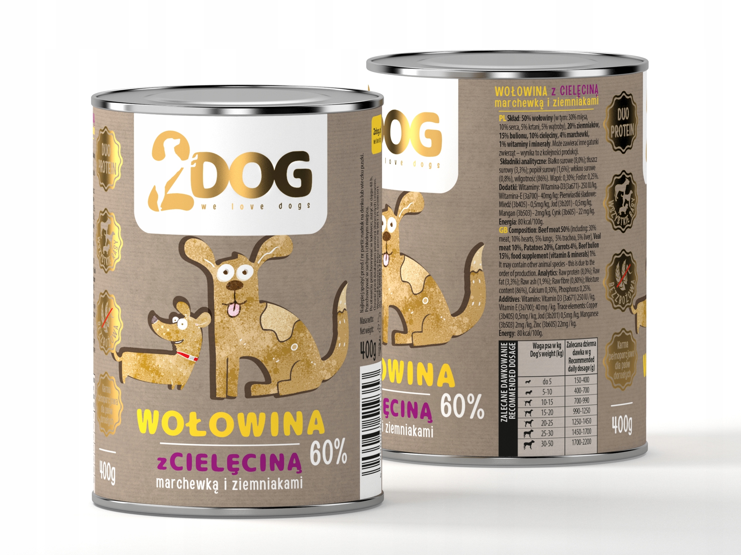 ✅Karma mokra 400 g WOŁOWINA + CIELĘCINA 60 % z marchewką i ziemniakami